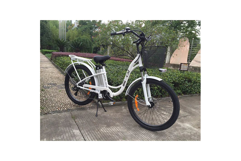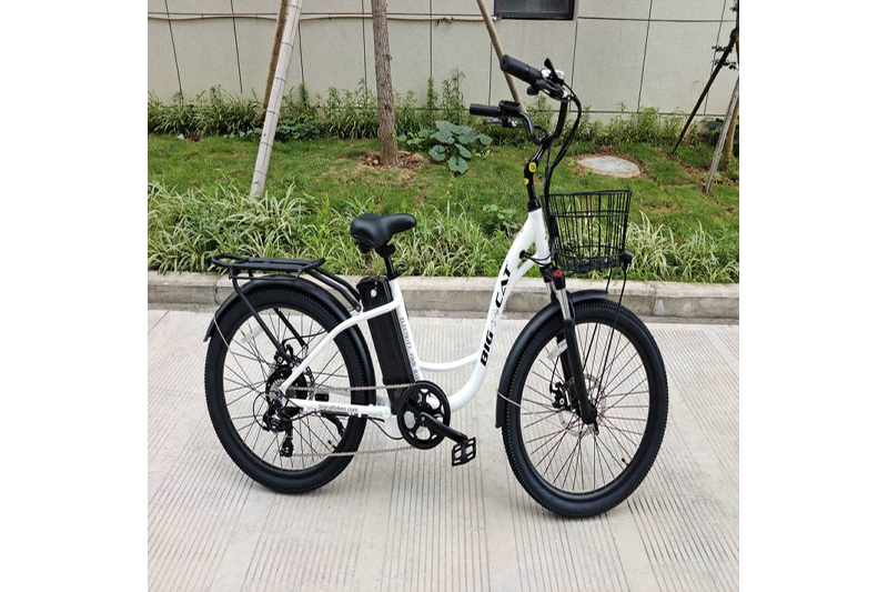 “The LBC electric bicycle is equipped with a 48V 13Ah Removable lithium-ion battery, while still maintaining its strong and efficient 500W geared rear hub motor. On this beach cruiser, you’ll be sure to get an average of 30-60 miles on a single charge! If it’s speed you’re after, we have that covered! These electric bicycles can reach speeds of up to 20 mph at the twist of a throttle, allowing you to get to your destination faster without breaking a sweat! Ride confidently with the upgraded 2.3” wheel and tire combo which gives riders a sturdier feel and overall control of the bicycle.One of the most important features on the LBC is the Pedal Assist function. This latest edition beach cruiser e-bike still offers both pedal assist and throttle functions, however, the new pedal assist function gives riders the ability to choose between 1-5 levels of pedal assist which control the amount or propulsion you get from the motor. Set it to the highest level for effortless riding, or if you’re seeking a workout and want to save some of your battery’s life, set the bike to a lower setting.Equipped with a Shimano 7 speed derailleur, getting up hills is much easier and when you’re coming downhill, don’t worry, The Big Cat Mini Cat features Tektro 180mm Front & Rear Mechanical Disc Brakes with motor cut off switch for a much safer stop.All-Big Cat Long Beach Cruiser models are equipped with a standard King Meter KM-529 LCD Display with intergrated wiring inside frame using simple plug and play design weatherproofing All ElectronicsFeatures:Frame: Step-through aluminum design for easy mounting and dismounting.?Motor: Powerful 500W 48V Bafang rear hub motor.?Battery: Removable 48V 13Ah lithium-ion battery, offering a range of up to 50 miles per charge (actual range may vary based on rider weight, terrain, and other factors).?Speed: Capable of reaching speeds between 20 to 23 mph.?Brakes: Equipped with large 180mm mechanical disc brakes on both front and rear, featuring a motor cutoff switch for enhanced safety.?Tires: 26 × 2.3″ Kenda smooth tires for a balanced ride.?Gearing: Shimano Tourney 7-speed SIS Index derailleur for versatile riding options.?Display: King Meter KM-529 LCD with integrated wiring, offering 5 levels of pedal assist and a walking assist function. ?Suspension: Front suspension fork with lockouts to adapt to various terrains. ?Accessories: Comes standard with a rear removable pannier rack and a front basket (13″W x 10.5″L x 10″H) for added utility.Ride in style with the **Big Cat Long Beach Cruiser** – a sleek, all-white beauty built for smooth cruising and ultimate comfort! “