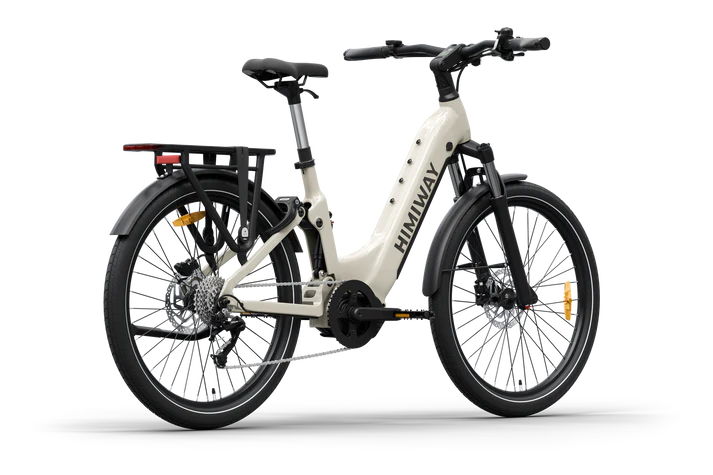 “Equipped with a responsive torque-sensing mid-motor, the A7 Pro offers swift, powerful ascents and quick starts, ideal for challenging terrains.The A7 Pro’s torque sensor intelligently adjusts electric assist in real-time, ensuring efficient, controlled cycling. This precise modulation offers a smoother ride, conserving energy while enhancing rider safety and stability.Flawless aerospace-grade aluminum frame, expertly polished for a seamless, weld-free finish.Seamlessly blends mountain bike technology into urban cycling, enhancing comfort, safety, and providing a smoother ride by effectively absorbing shocks and reducing vibrations.High-capacity 720Wh LG battery, 48V 15Ah, detachable and built with durable 21700 Li-ion cells for extended range and performanceSafeguarding your ride with intelligent battery protection for enhanced longevity and performance.Auto-Illuminating Brake LightFrame-integrated taillights illuminate automatically upon braking, enhancing safety and visibility for night riding.9 Speed Gear Shift SystemVersatile shifting for optimal control in diverse riding conditions, complemented by a responsive pedal-assist system to tailor your ride perfectly.Hydraulic disc brakeExceptional, lasting stopping power with minimal maintenance for safer, cost-effective riding.Secure with a ClickRobust, integrated rear-wheel lock for enhanced security. Designed for theft deterrence and resilience against daily wear and extreme weather.Throttle Thumb throttle | Shimano shift | Bell48V Spotlight 500LM luminosityIntegrated Display 3.5″ full color digital screenControl on-off gear shift settings”Redefine your commute with the Himiway A7 Pro—an Urban Electric Commuter Bike that combines style, speed, and efficiency for city living!””