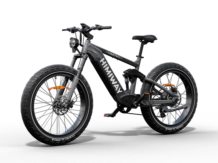 “It is the first e-bike on the U.S. market with four-bar linkage suspension technology, complemented with 4.8” CST fat tires, these specialize in absorbing both rear-upward force and vibrations, which allows you to ride safely over rutted trails, deep snow, and soft sand without taxing the rider.The 6061 aluminum alloy frame offers excellent strength and durability while remaining lightweight, allowing you to easily maneuver the bicycle. It also possesses good corrosion resistance and anti-oxidation properties, ensuring that the frame stays fresh and durable over extended periods.It combines the new Samsung/LG battery technology with a 5000mAh single cell capacity in a smaller size but with larger diversity. Compared with 3500mAh cells made of nickel, cobalt, and manganese, this 960Wh battery efficiently improves the range, stability, and safety of Himiway bikes. A single charge can last up to 60 miles on pure electric power and 80+ miles with pedal assist. The battery will maintain 80% capacity after 1000 charges.Safeguarding your ride with intelligent battery protection for enhanced longevity and performance.1000W Upgraded Brushless Geared Hub Motor Use the latest updated inner ring specialized in high temperature resistance and better heat dissipation, which can reduce the motor magnets’ attenuation speed to guarantee a longer life expectancy. The 1000W brushless gear hub motor can help you conquer even the most rugged terrain easily.You can think of the FOC as the brain controlling the motor in real-time. It recognizes your riding conditions and instantly calls on the motor for optimal performance. The FOC measures scooter diagnostics, which you as a driver cannot see, and then decides how to respond to your driving inputs.The Backlit LED display provides information on speed, mileage, power, etc.The D7 is equipped with rugged, all-terrain tires designed for superior grip and stability, capable of handling both mountainous paths and urban pavement with ease. The innovative hydroplaning-resistant tread pattern elevates its capabilities, ensuring riders enjoy a seamless cycling experience across diverse landscapes.Hydraulic brakes provide superior braking performance and durability. With proper maintenance, there won’t be a decline in braking power for 5 years.The intuitive torque sensor seamlessly amplifies your pedaling efforts, providing a more natural riding experience while conserving battery life and extending riding range.Thumb ThrottleThe thumb throttle are designed for professional cycling enthusiast. Your both hands are more capable of keeping the balance of Himiway Cobra.Shimano 8 Speed Gear Shift SystemThe Shimano 8 speed gear shift system offers you more choice while riding in a variety of conditions. Along with the pedal-assist system, you can find the speed that suits your journey. Using this system accurately can increase the range of a single charge by up to 15%.Front Fork: Coil SuspensionThe durable Himiway suspension fork has preloaded adjustments for the spring’s stiffness and a lock-out lever. With 80mm of available compression, it is the perfect fit for your chosen terrain.Durable Aluminum CranksetDurable aluminum crankset guards provide protection to the chainring and assists the chainstay while traveling over rugged terrain.Selle Royal SaddleThe Selle Royal Saddle features a comfortable design specially made for pressure relief.48V Luminosity TaillightThe Himiway independent R&D luminosity taillight is 20% brighter than LED light. Visibility is improved to guarantee your safety while riding at night.Conquer any terrain with power and style—ride the Himiway D7 (Cobra) Full Suspension Electric Bike and unleash your adventure!”
